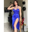 Saten Yırtmaçlı Uzun Kadın Elbise