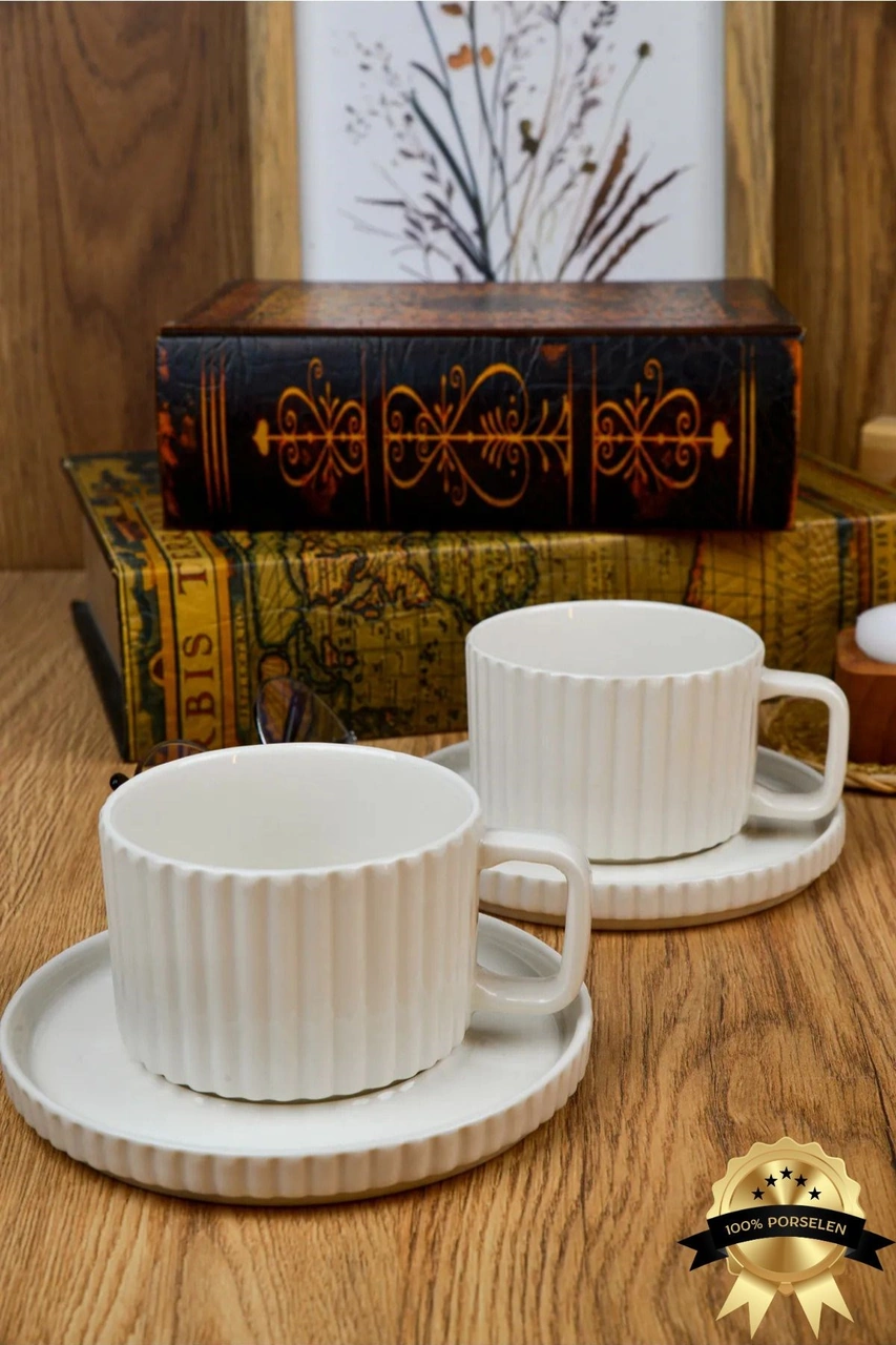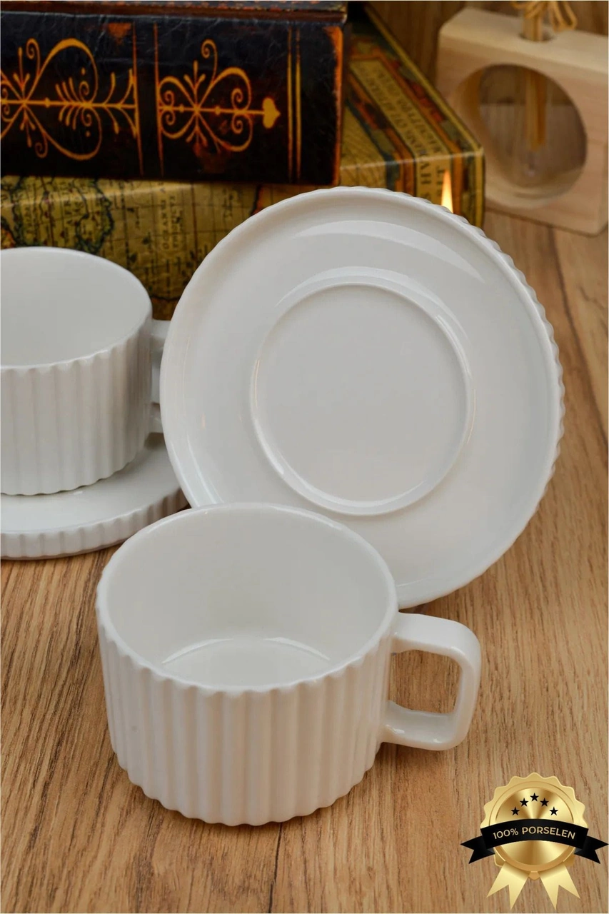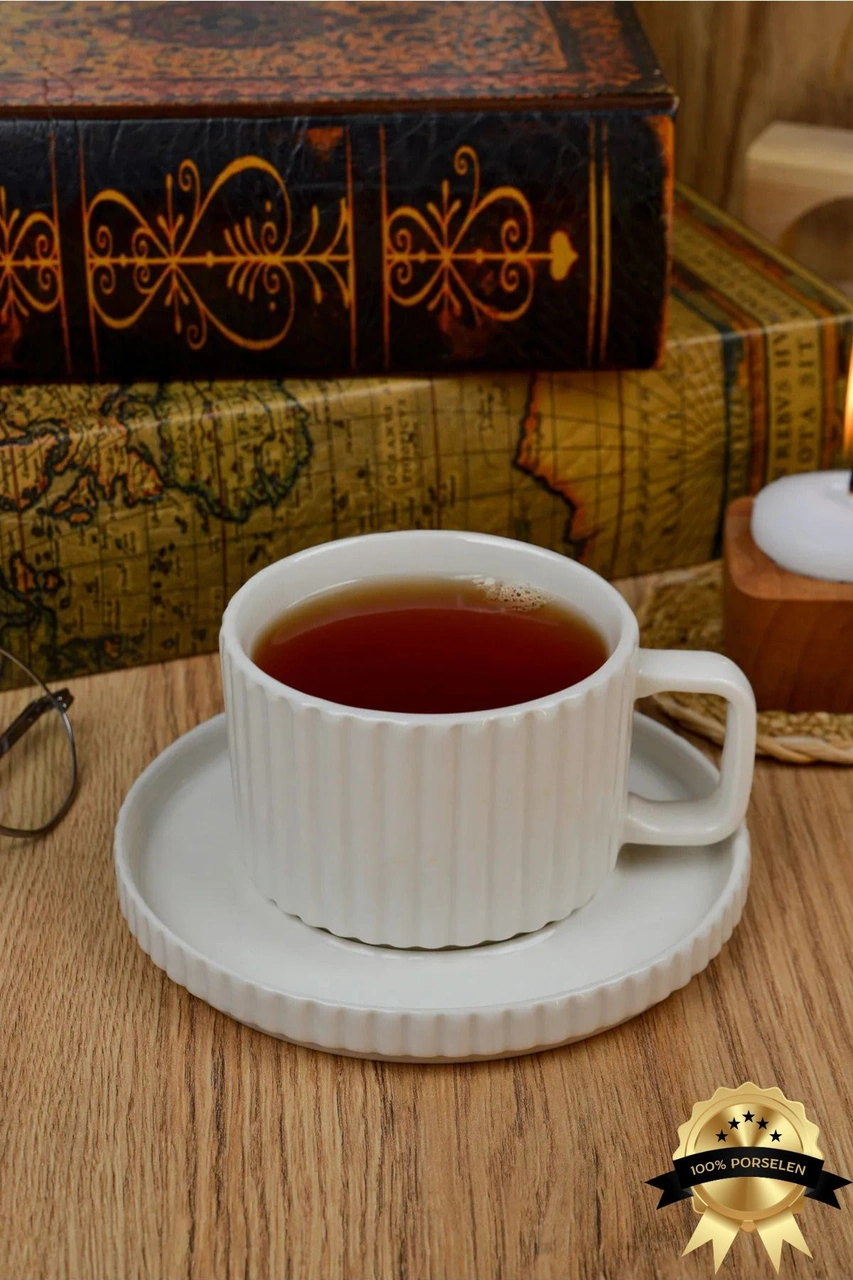 Satürn 4 Parça 2 Kişilik Porselen Çay Fincan Seti Beyaz