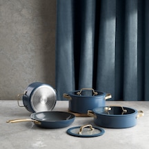 Schafer Sapphire 7 Parça Seramik Tencere Seti-mavi/gold