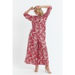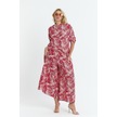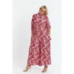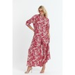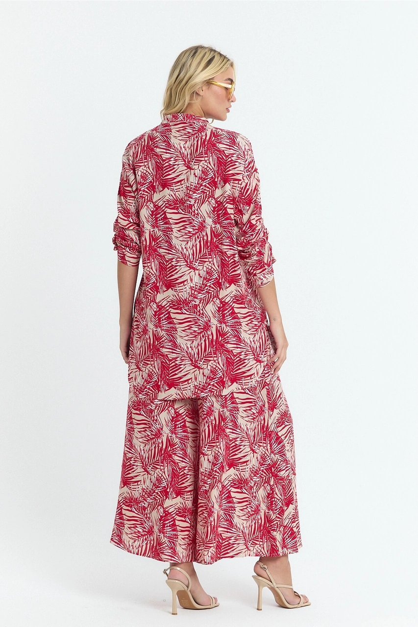 Schık Kadın Viskon Rahat Bol Paça Truvakar Kol Önü Düğme Baskılı Takım Kırmızı
