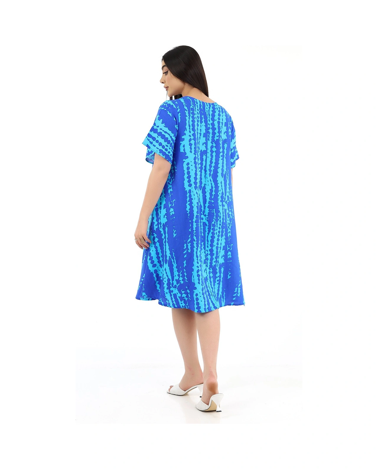 Schık Kadın Viskon Yarım Kol Kare Yaka Elbise Mavi Mavi