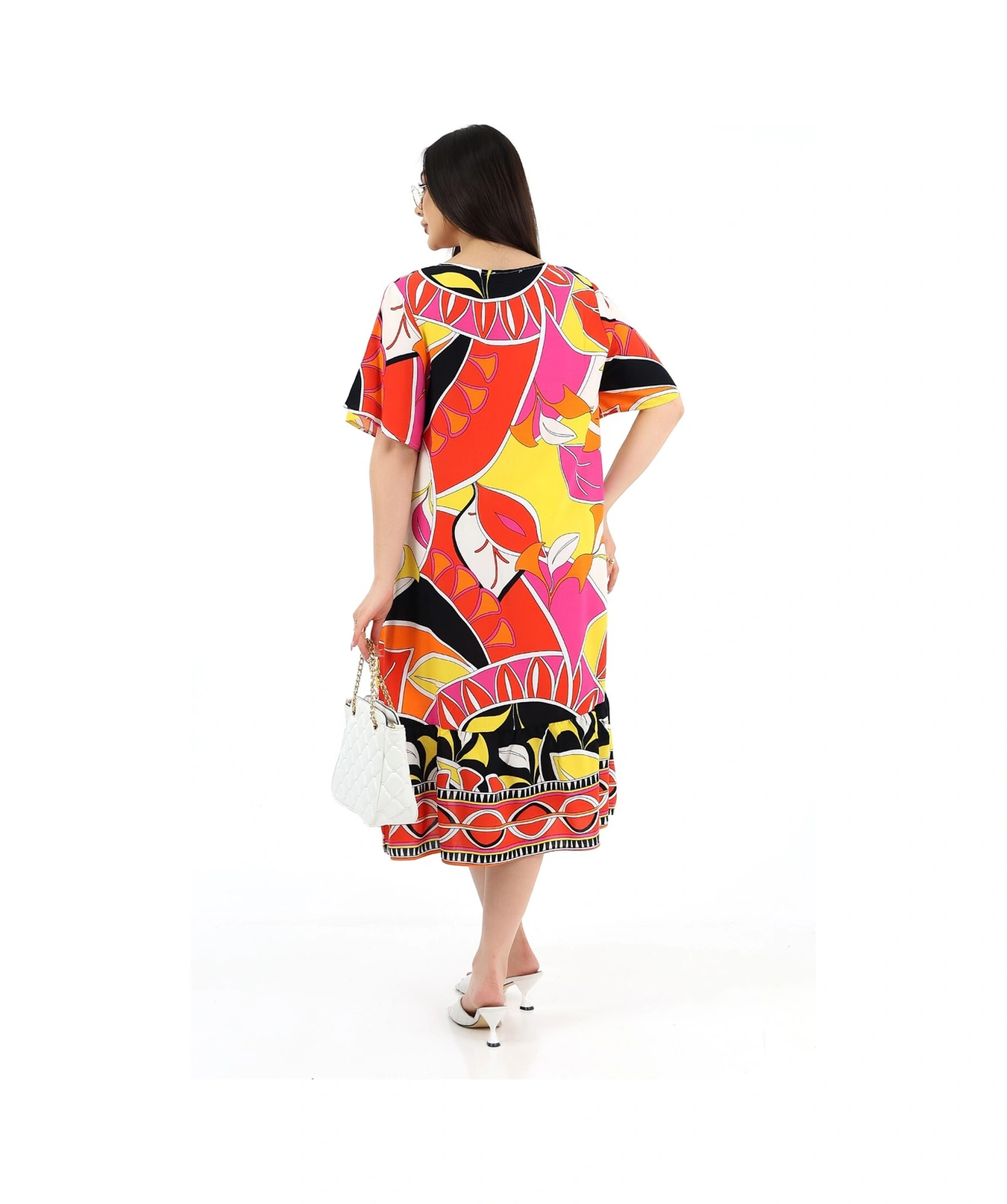 Schık Kadın Viskon Yarım Kol O Yaka Cepli Fırfırlı Elbise Orange Orange