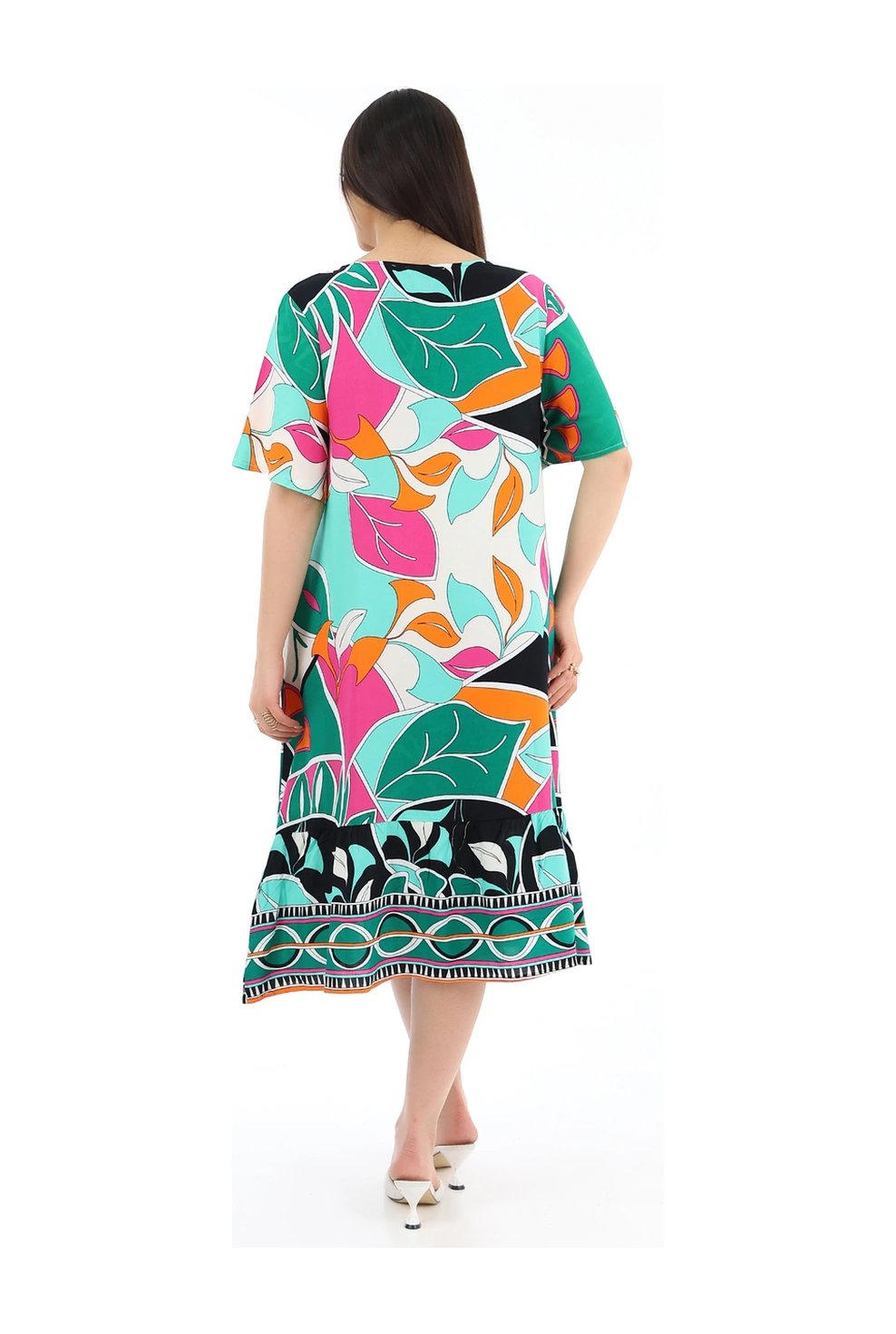 Schık Kadın Viskon Yarım Kol O Yaka Cepli Fırfırlı Elbise Yeşil Yeşil
