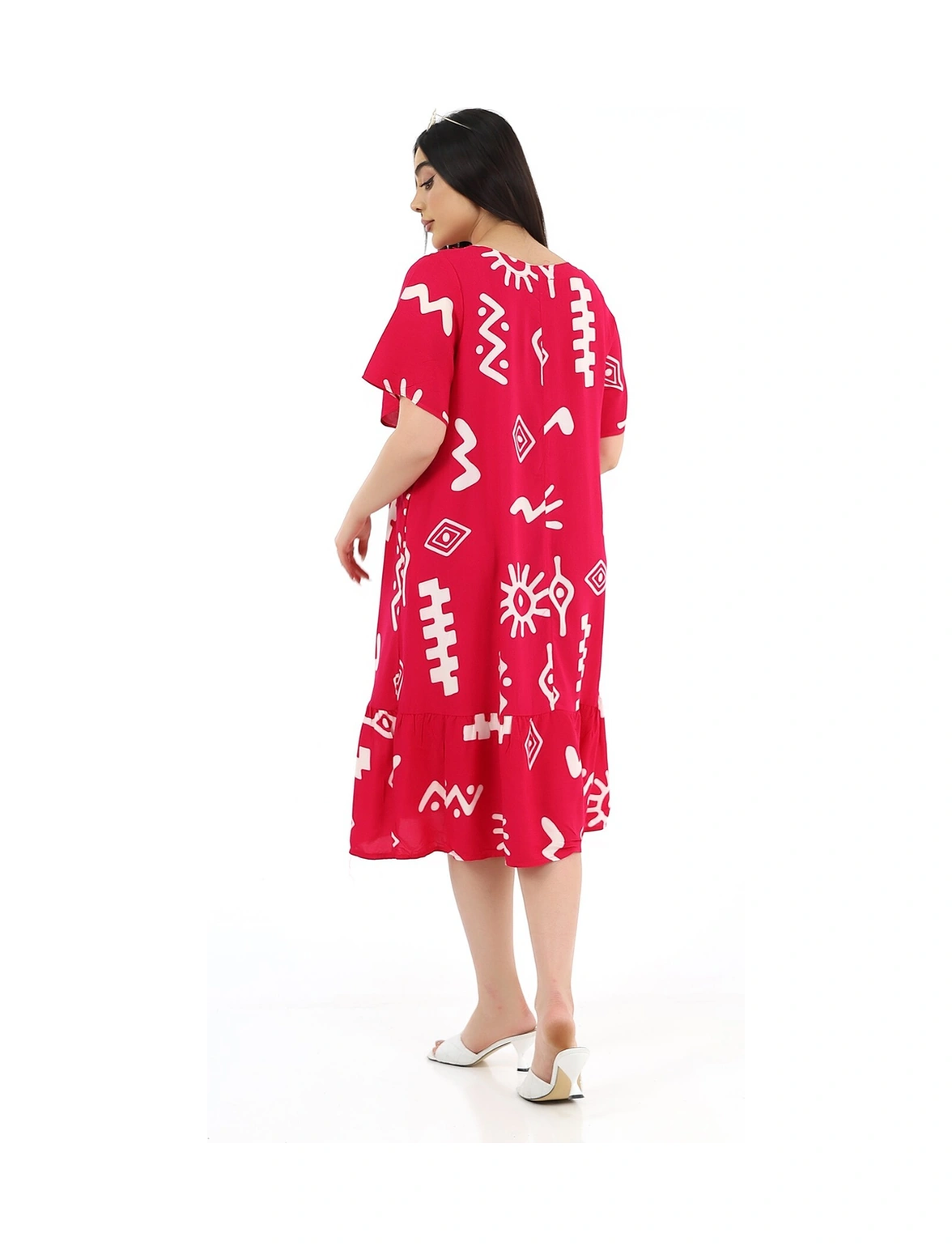 Schık Kadın Viskon Yarım Kol V Yaka Cepli Fırfırlı Elbise Kırmızı Kırmızı