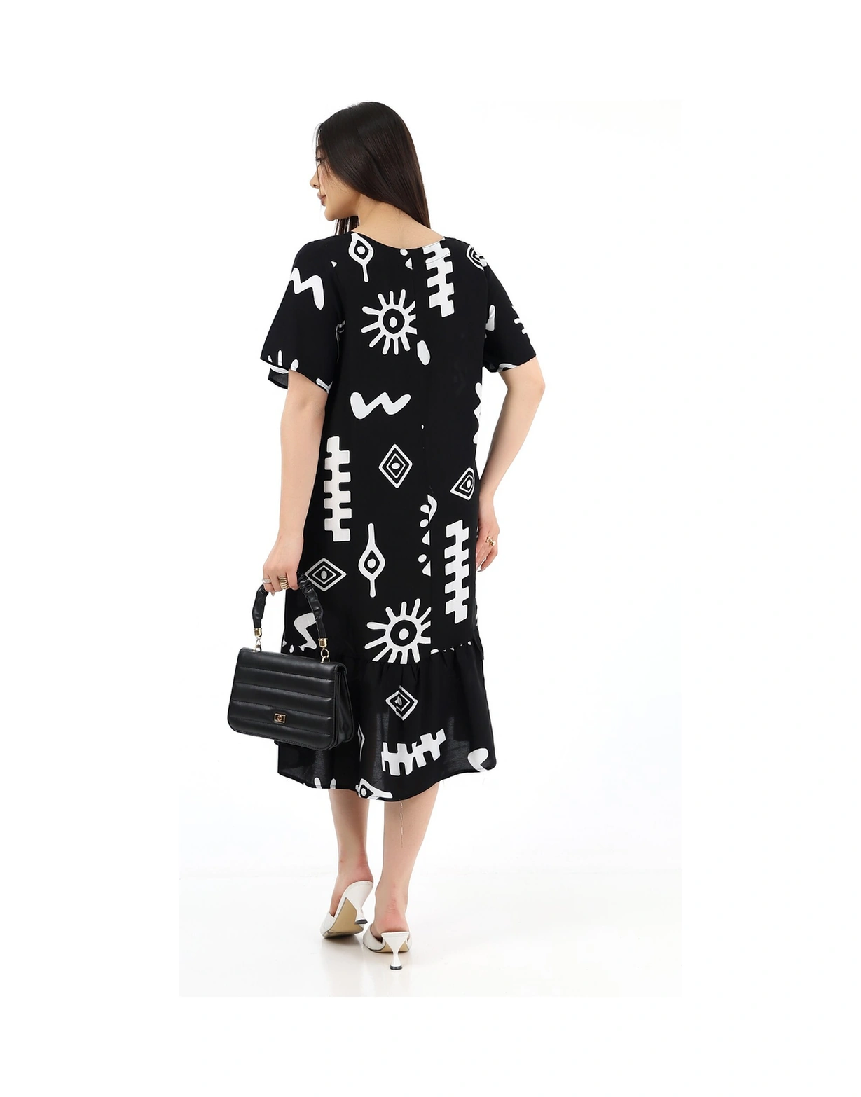 Schık Kadın Viskon Yarım Kol V Yaka Cepli Fırfırlı Elbise Siyah Siyah