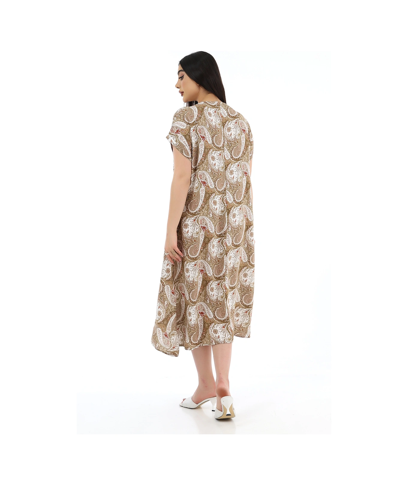 Schık Kadın Viskon Yarım Kol V Yaka Halkalı Cepli Elbise Kahve Kahverengi