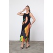 Schık Kadın Yazlık Bol Kolsuz Rahat Baskılı Elbise Turuncu