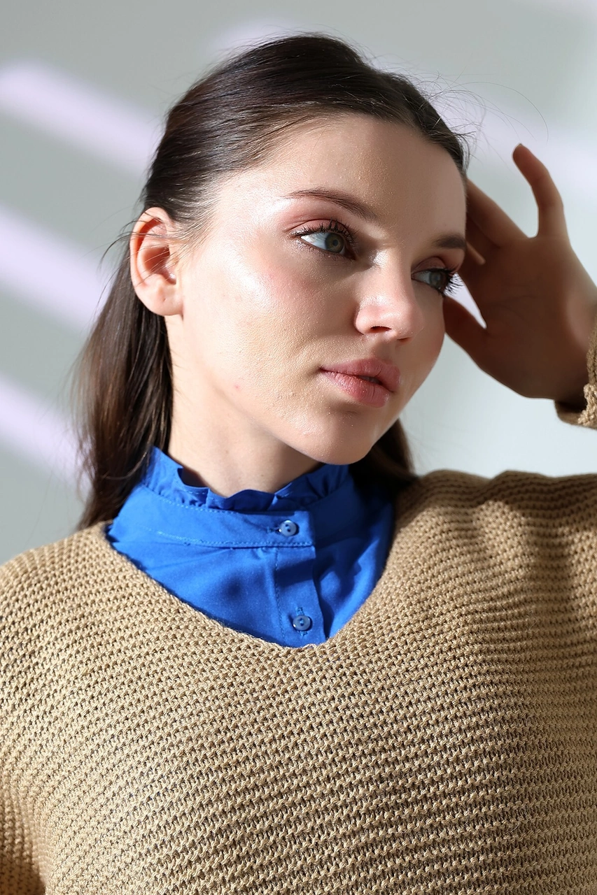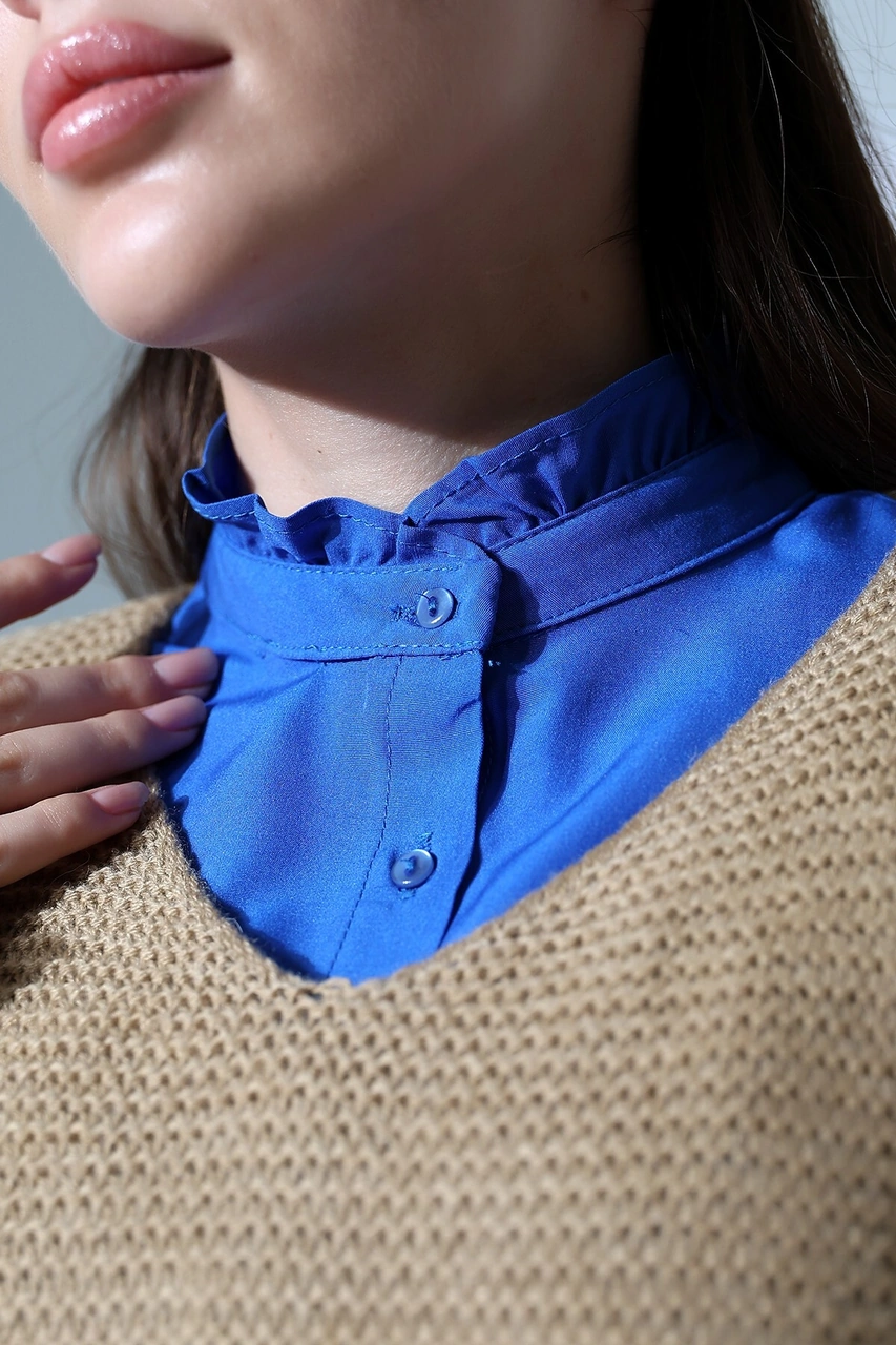 Schık Schık Pamuklu Fırfır Yaka Çıkarılabilir Yarım Gömlek Saks Sckwm24gml02 Saks