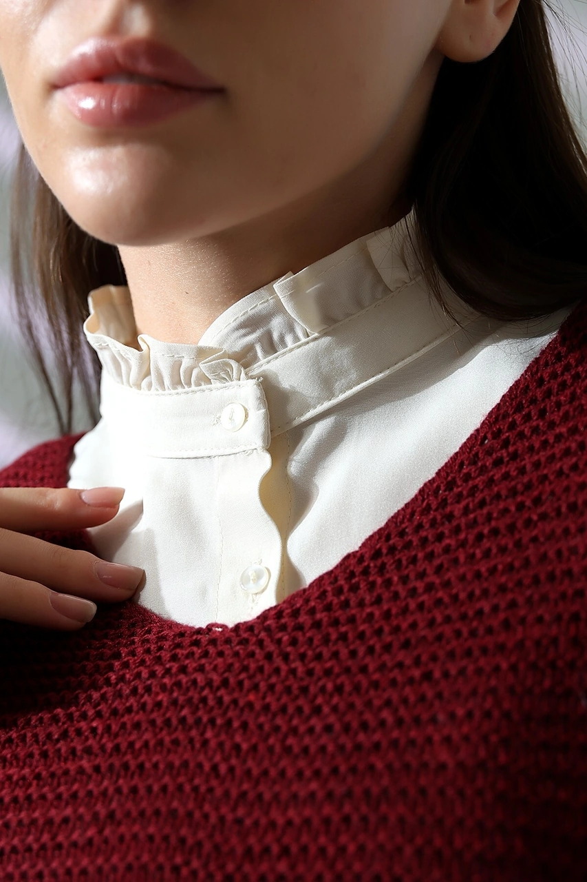 Schık Schık Pamuklu Fırfır Yaka Çıkarılabilir Yarım Gömlek Taş Sckwm24gml02 Taş