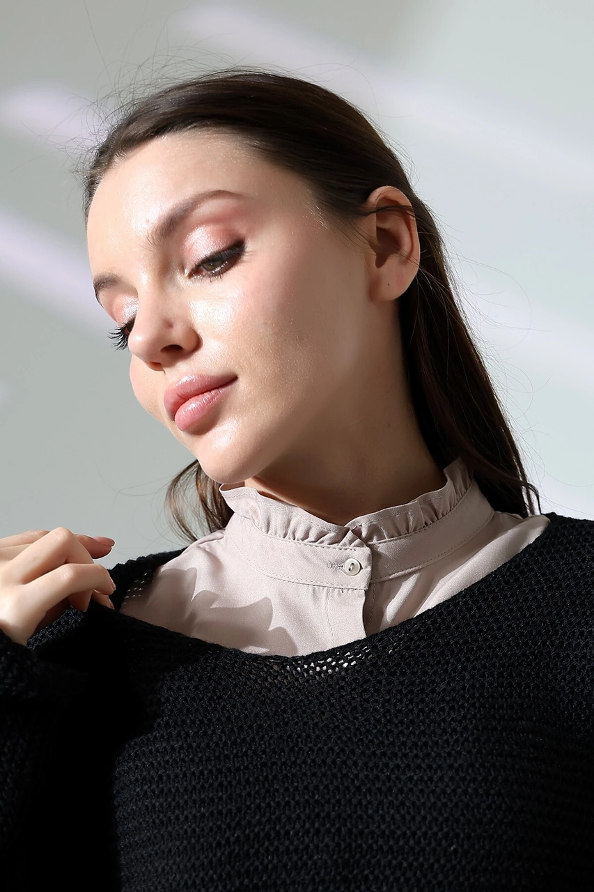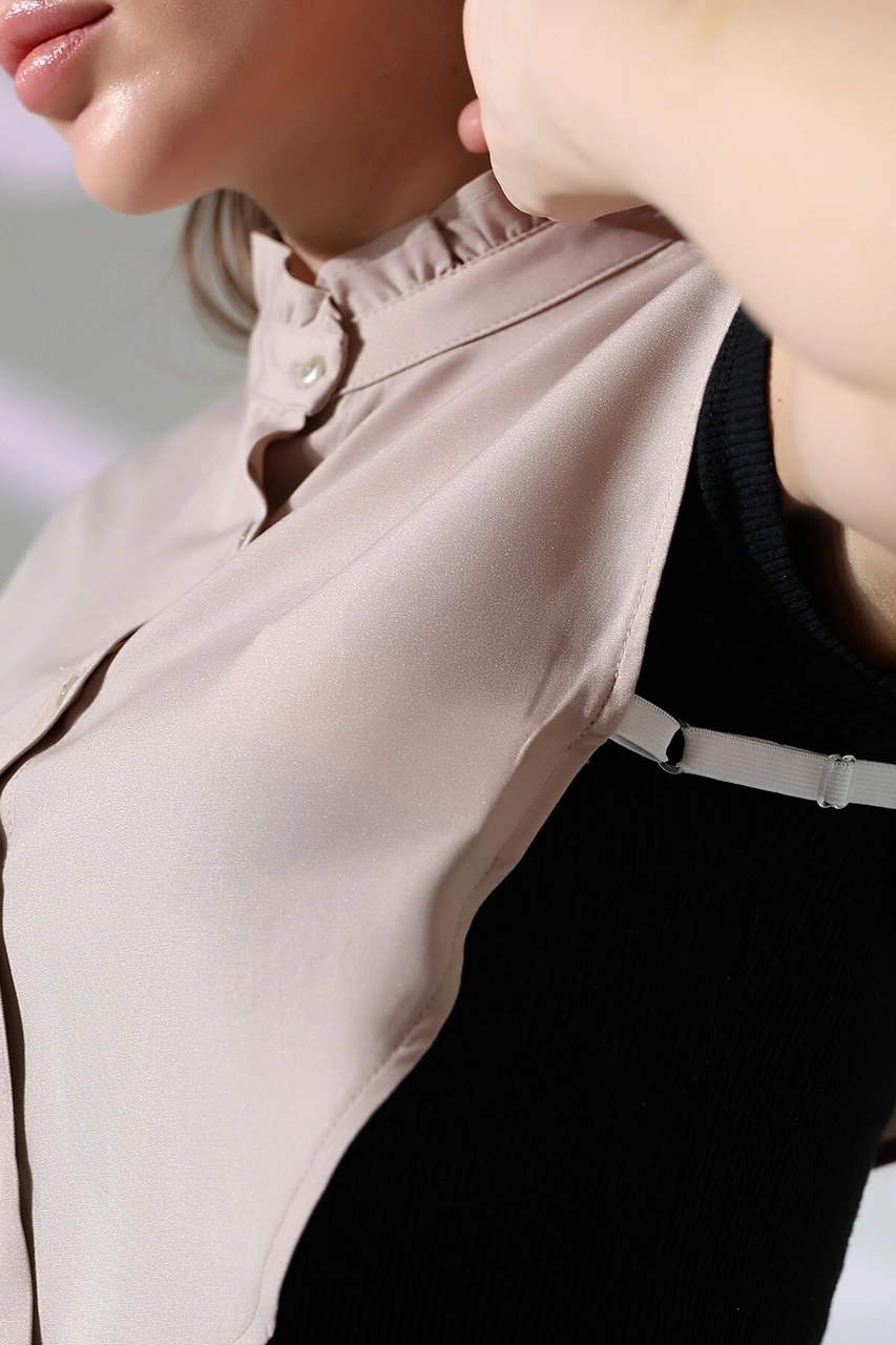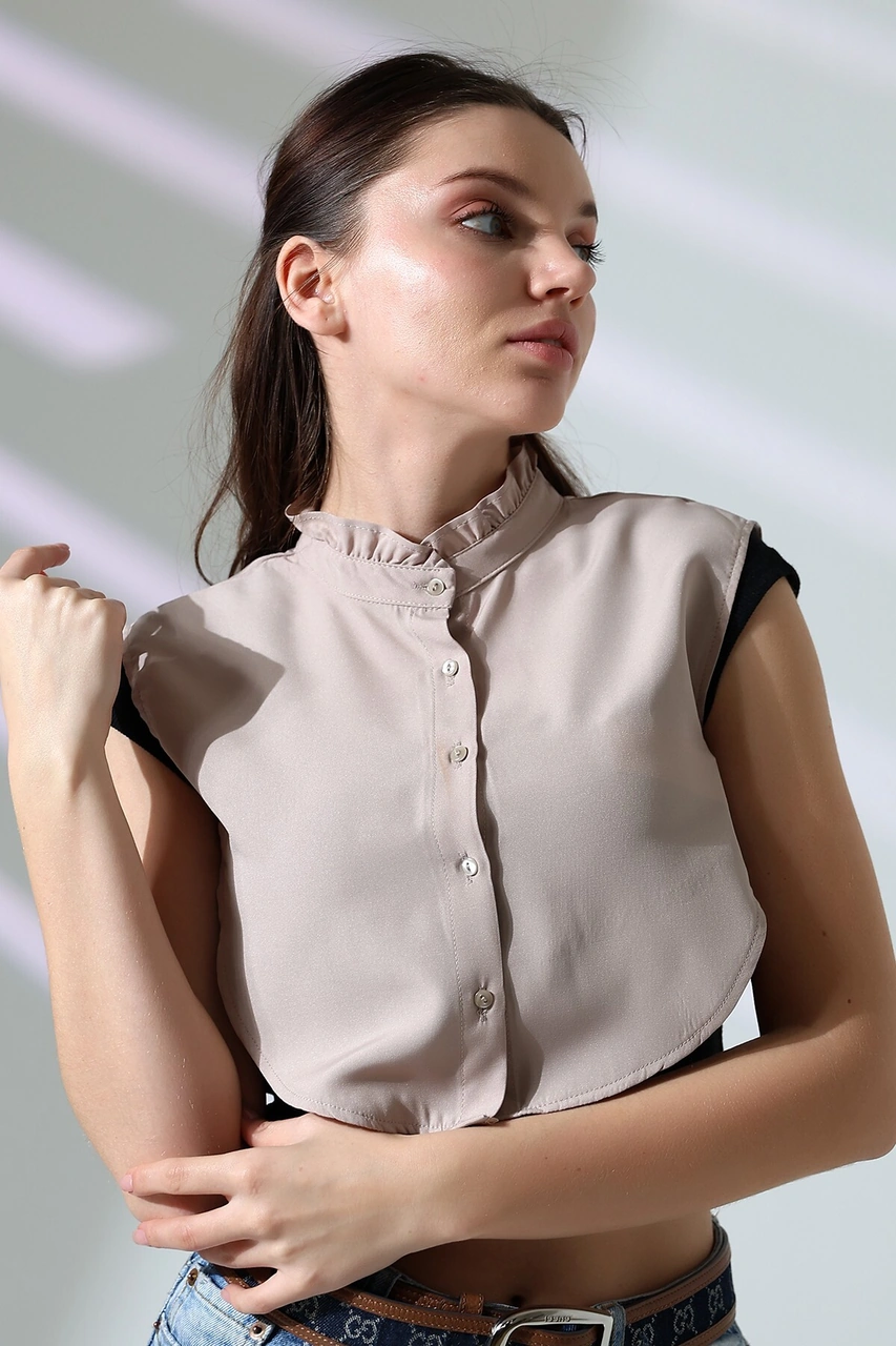 Schık Schık Pamuklu Fırfır Yaka Çıkarılabilir Yarım Gömlek Vizon Sckwm24gml02 Vizon