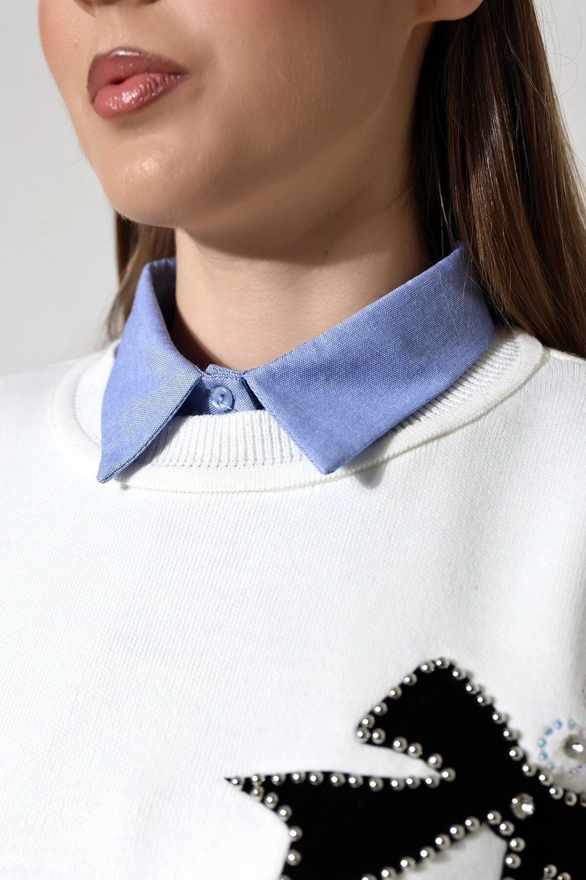Schık Schık Pamuklu Yakalı Çıkarılabilir Yarım Gömlek İndigo Sckwm24gml01 Indigo
