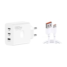 Schitec 160w 2xtype-c + Usba Quick Charger 5.0 Teknolojili Ev Tipi 3 Çıkışlı 6a 120w Usba To Type-c Kablolu Şarj Aleti