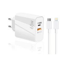 Schitec GN65 WTL3 65 W USB-A PD33W Q.C 3.0 Type-C To Lightning Kablolu Hızlı Şarj Aleti 3 M