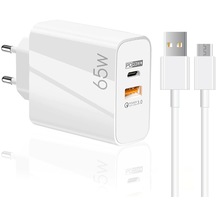 Schitec GN65 WUM3 65 W USB-A PD33W Q.C 3.0 USB-A To Micro Kablolu Hızlı Şarj Aleti 3 M