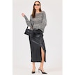 Seçil Kadın Yırtmaçlı Suni Deri Etek 0010 Siyah Siyah