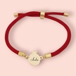 Seda İsmine Özel İpek Örgülü 14 Ayar Altın Plakalı Nar Motifli Hediye Bileklik-323isim-kırmızı Altın