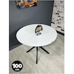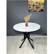 Sedef Beyaz Yuvarlak Mutfak Masası Yemek Masası Balkon Masası Metal Siyah Ayak 100 Cm