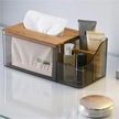 Şeffaf-çok Fonksiyonlu Uzaktan Kumanda Doku Saklama Kutusu Ev Oturma Odası Yemek Odası Masaüstü Dekorasyon Ahşap Kapak Doku Kutusu