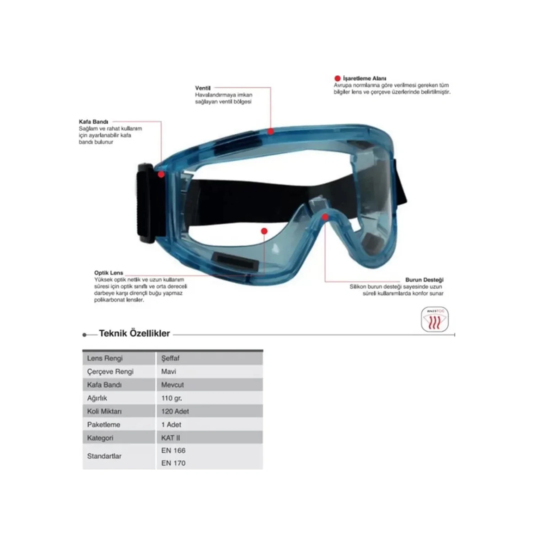 Şeffaf Gözlük Koruyucu İş Güvenliği Gözlüğü 024a Starline Tam Kapalı Koruma
