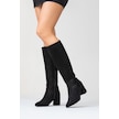 Sejas Siyah Hakiki Deri Süet Kadın Topuklu Çizme Siyah Süet