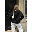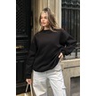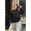 Şeker Pembe Basic Bisiklet Yaka Oversize Sweatshirt Siyah