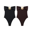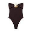 Seksi Monokini Bandeau Kolsuz Slim Fit Tek Parça Bikini Metal Takılarla Karın Kontrol Hızlı Kuruyan Tek Parça Mayo Kahverengi