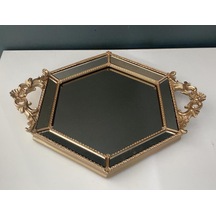 Selim Dekor Altıgen Aynalı Tepsi Vizon