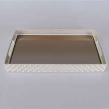 Selim Dekor Piramit Dikdörtgen İnci Tepsi 45x26 Cm