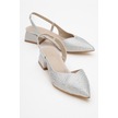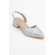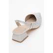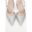 Sella Gümüş Saten Taşlı Kadın Kısa Topuklu Ayakkkabı Gümüş