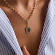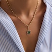 Sembolgold 14 Ayar Özel Tasarım Yeşil Taşlı Kolye Ball Chain T14386 Renkli