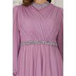 Senna Taş Detaylı Büyük Beden Şık Tesettür Abiye Lavanta
