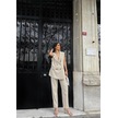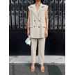 Sensuelle Çizgili Uzun Yelek - Pantolon Takım Polviscon - Bej Bej