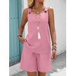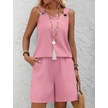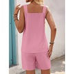 Sensuelle Kadın Askılı Yuvarlak Yaka Kuş Gözü Detaylı Bürümcük Bluz Ve Short Ikili Takım Pembe
