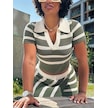 Sensuelle Kadın Kısa Kollu Polo Yaka Crop Asimetrik Mini Triko Etek Ikili Takım Yeşil