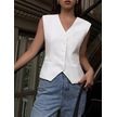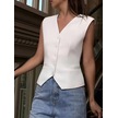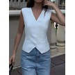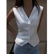 Sensuelle Kadın Sıfır Kollu Önden Düğmeli Atlas Yelek Beyaz
