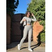 Sensuelle Kadın Yandan Bağlamalı Geniş Paçalı Fitil Kaşkorse İkili Takım Gri
