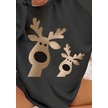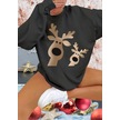 Sensuelle Kadın Yılbaşı Özel Uzun Kollu Bisiklet Yaka Geyik Desenli Viskon Iki Iplik Bluz Antrasit