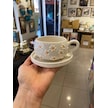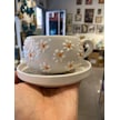 Seramik El Yapımı Fincan Takımı 2'li Set Papatya Desenli, Tabaklı Beyaz - Sarı