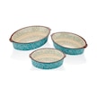 Seramik Oval Kare Kulplu Fırın Kabı 3'Lü Turkuaz
