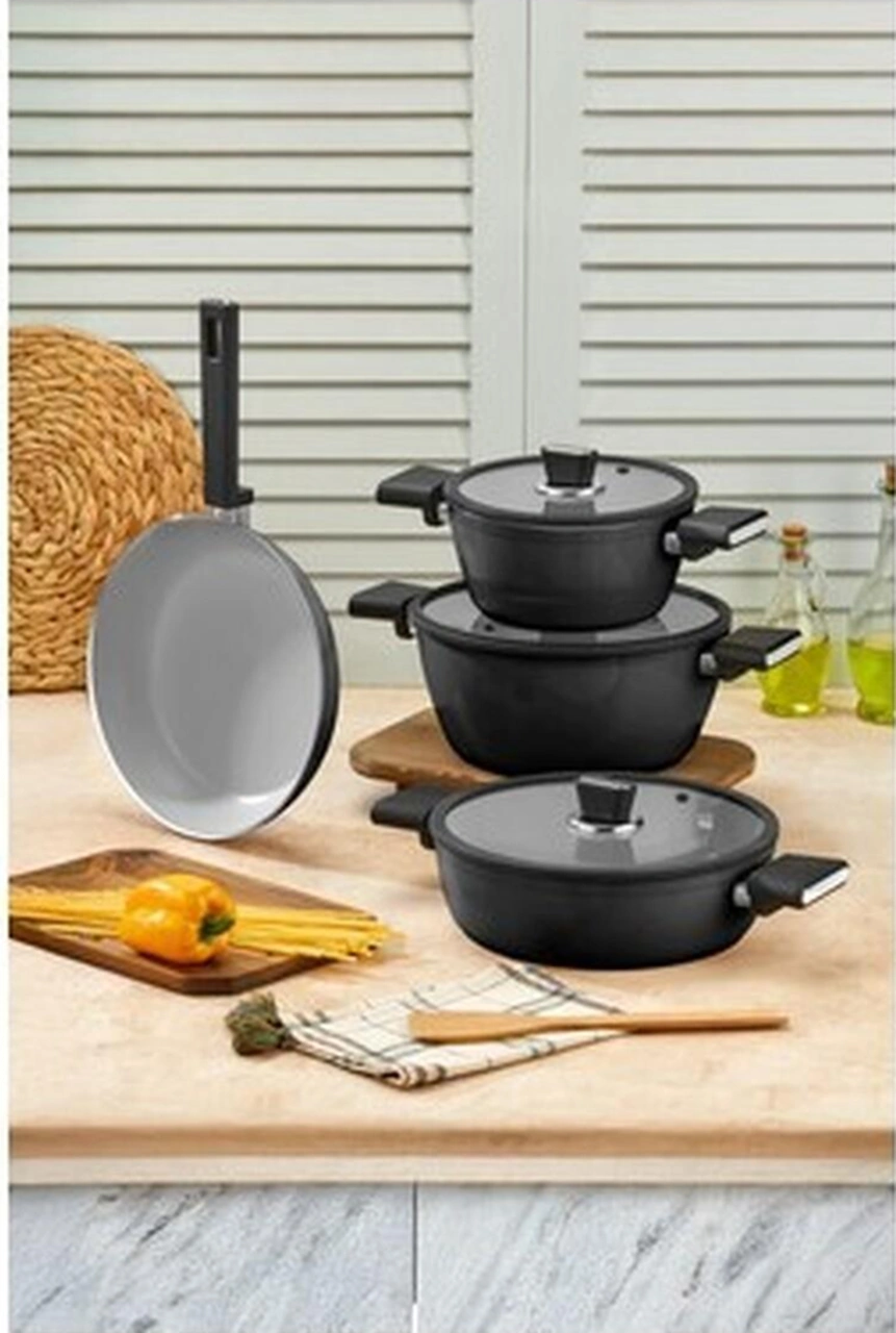 Seramik Tencere Seti 7 Parça Krem Bakır - Siyah