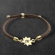 Serbest Temalı Yaprak Figürlü Örgülü 14 Ayar Altın Plakalı Hediye Bileklik-331sembol-kahverengi Altın