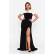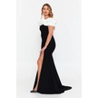 Şeref Vural Kadın Büyük Beden Derin Yırtmaçlı Balık Form Maxi Abiye Elbise 8319 Siyah-beyaz Siyah-beyaz