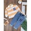 Şerit Çizgili Detaylı Likralı Polo Yaka Erkek Bebek Takım Sari