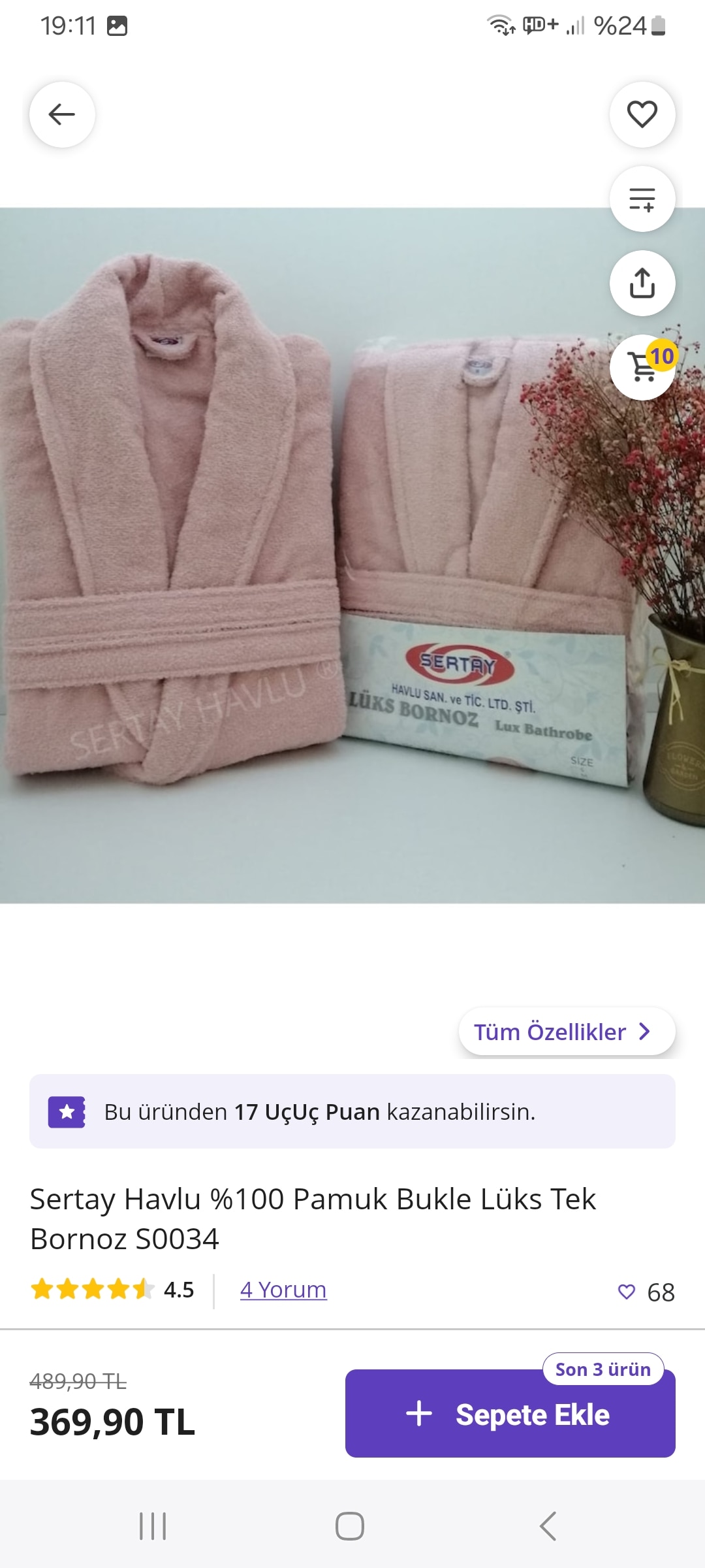 Sertay Havlu %100 Pamuk Bukle Lüks Tek Bornoz S0034 Somon