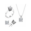 Sertifikalı Swarovski Tek Taş Kalp Montür 925 Gümüş Set Takım