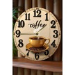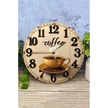 Sessiz Yuvarlak Ahşap Duvar Saati, Kuvars Coffe Desen 2d Sdw028 Renkli