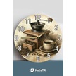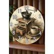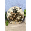 Sessiz Yuvarlak Ahşap Duvar Saati, Kuvars Coffe Desen Sdw2018 Coffe , Cafe Renkli