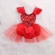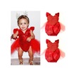 Sevgililer Günü Bebek Bebek Kız Tül Kalp Romper Tulum Tulum Kıyafet Kostüm Boyutu 0-3y Kırmızı