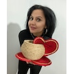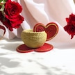 Sevgililer Günü Hediyesi, Kalpli Fincan Sepet, Dekoratif Sepet, Hediyelik Sepet, Dekor Sepet, Çok Amaçlı Sepet Kırmızı - Kahverengi