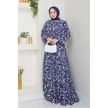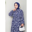 Sevil Yarım Düğmeli Dokuma Viskon Elbise 1504 - Lacivert Lacivert